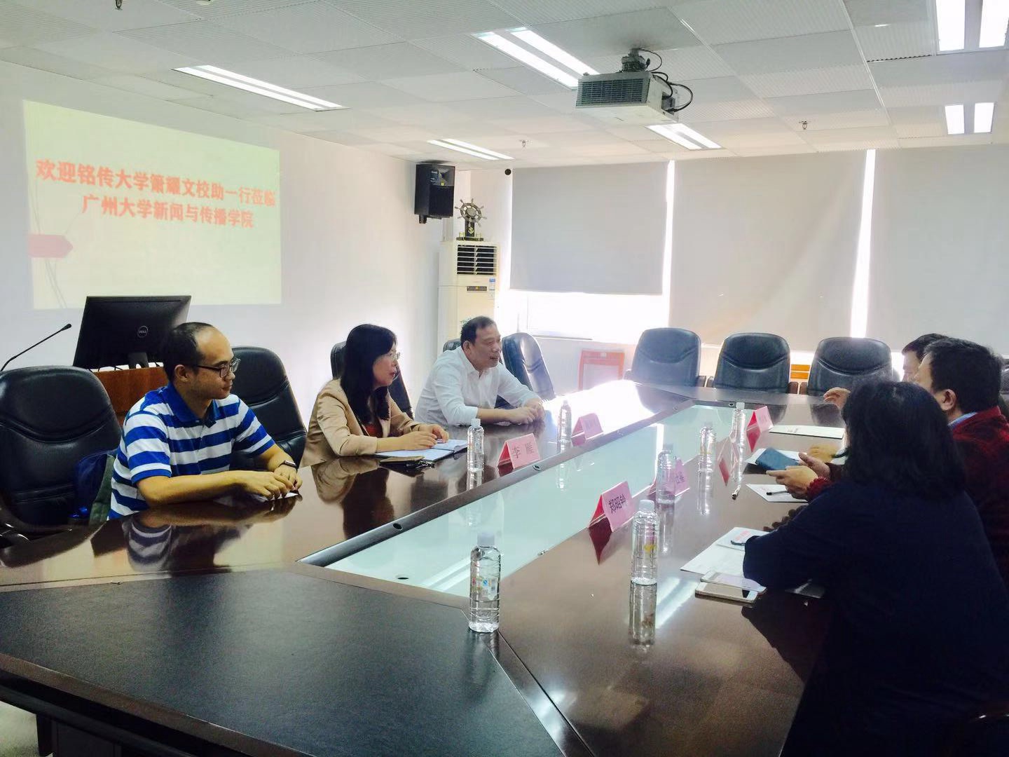 学科建设、师资力量以及学生发展等基本情况,特别介绍了近年来学院快速发展所取得的成绩,并表示希望今后进一步加强与台湾铭传大学传媒学院在学术、师资、学生等方面的交流合作。台湾铭传大学萧耀文校长特别助理介绍了铭传大学的发展历程、发展现状,以及此次访问的目的。随后,双方就传媒专业在联合学生培养、课程设置、学术交流等方面交换了意见。双方表示,今后将进一步增进学院之间的学术交流与合作,让更多学生和青年教师有机会走访沟通,交流学习。