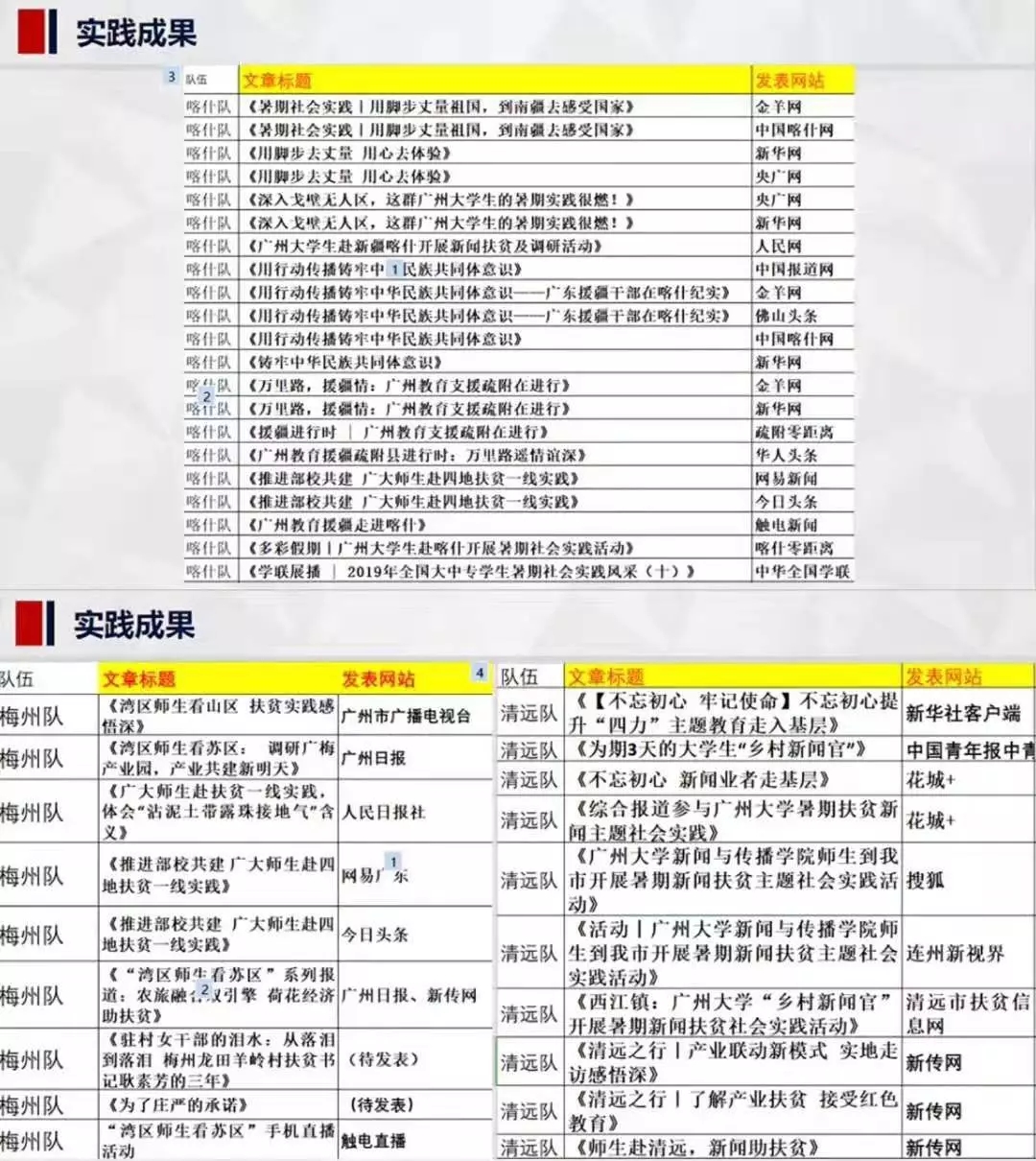 坚定立场,了解国情,深入实践。讲好基层的故事,传递脱贫攻坚第一线的声音。实践队伍结合自身专业所长,生产了多种形式的“脱贫攻坚”系列报道,在新华社客户端,人民日报数字网、中国青年报等多个央媒及地方媒体发表41篇报道。