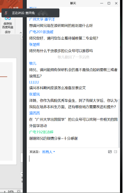 关于读研,同学们表现出极大的兴趣并提出了许多问题,董泽扬也耐心地给出了回答,并鼓励同学们尽早为自己的未来做出规划,勇敢地付诸实践。