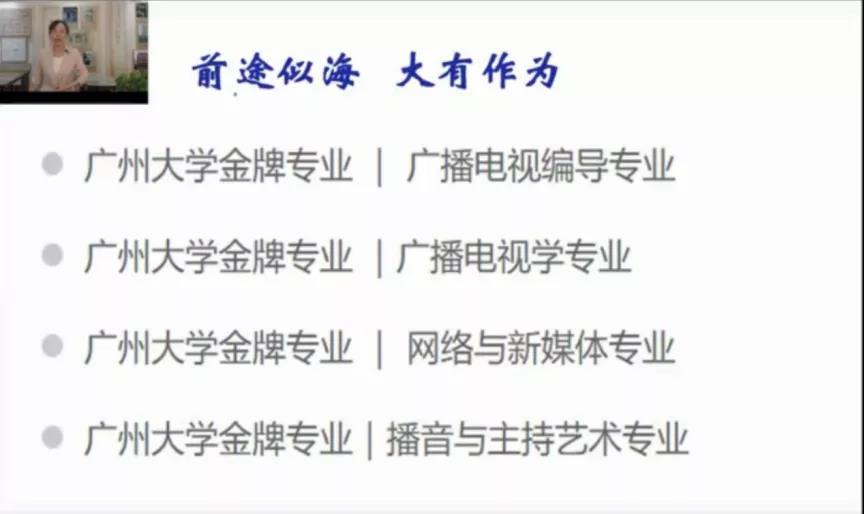 拥有四大金牌专业,分别是:广播电视编导、广播电视学、网络与新媒体和播音与主持艺术。其中,广播电视编导、广播电视学分别获批2019、2020年度国家级一流专业建设点,播音与主持艺术获批2020年度广东省一流专业建设点。在刚刚公布的2021“软科中国大学专业排名榜”上,性爱网