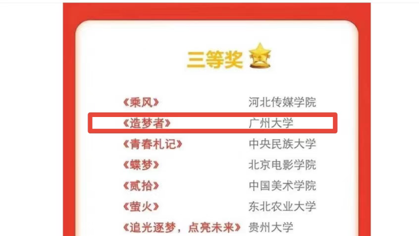 曾丽红老师指导,21级广播电视研究生王彦琳主创的纪录片作品《造梦者》在该评选活动中荣获三等奖。